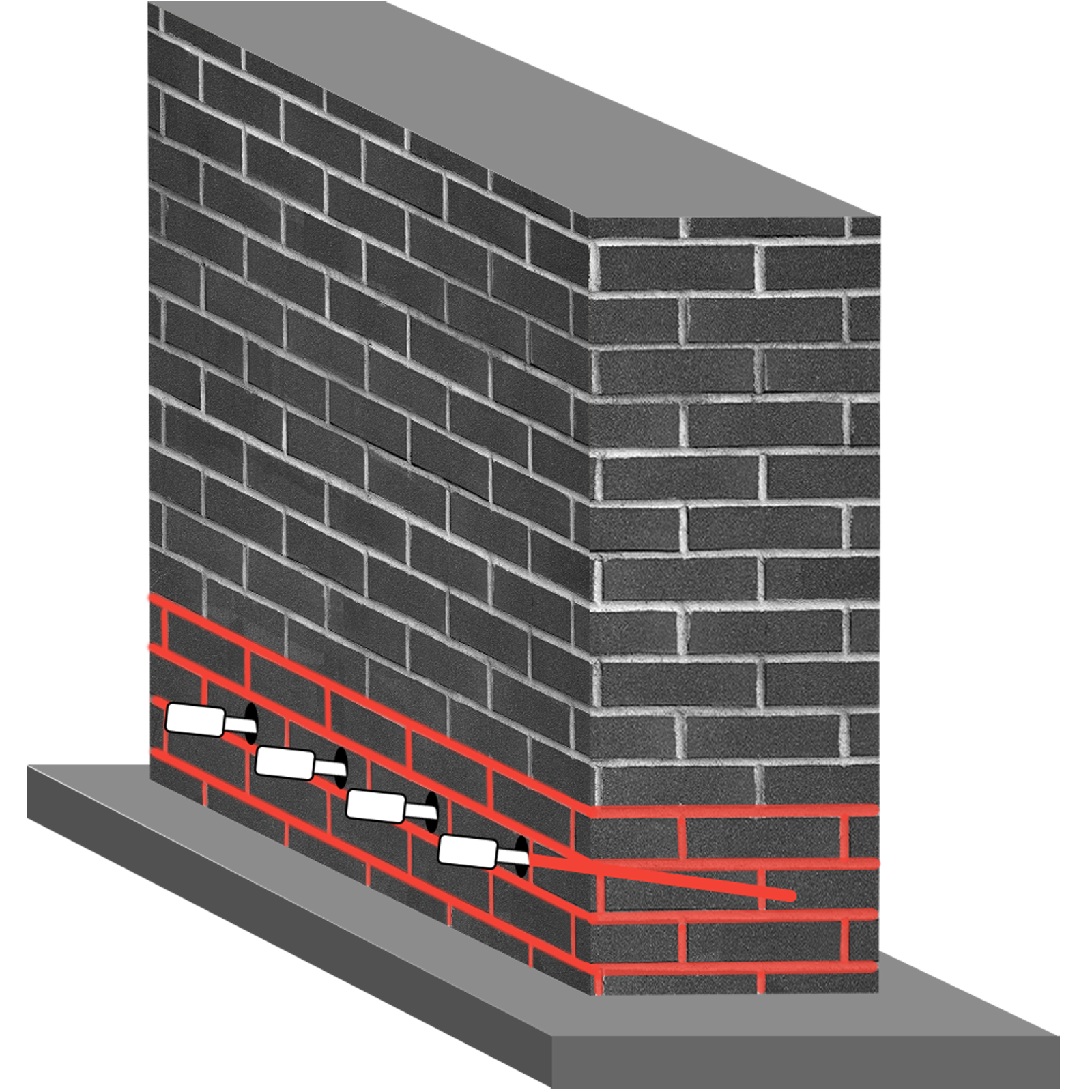 Eine fehlende oder undicht gewordene Horizontalsperre kann nachträglich von Innen eingebaut werden. Wir verwenden das Bohrloch- und Kartuschenverfahren unter Einsatz von Spezialmaterialien, welche sich im Mauerwerk verteilen und eine Horizontalsperre bilden.